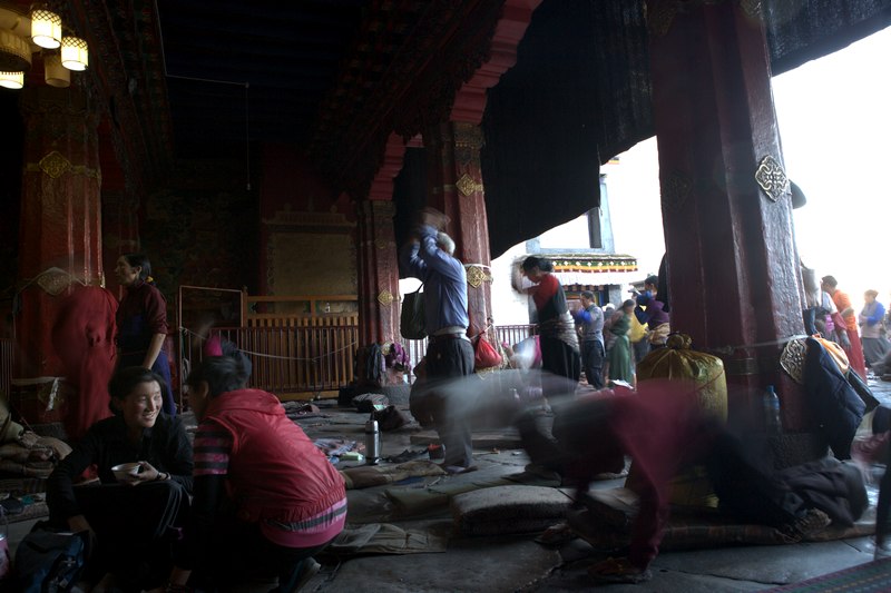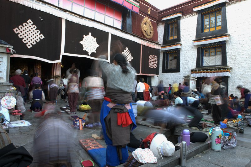 又一天,上午早起去大昭寺拍磕长头的人,今天农历四月十号,莲花生大师的生日,照例又是人山人海,我在大堂的角落里拍了好多张,没有满意的。北京和天津MM一大早想混进去,还是被眼尖的保安找出来买票去。每次节日,大昭寺的门票都是小光盘,我有了两张,送涛哥一张,自己的却找不到了。
