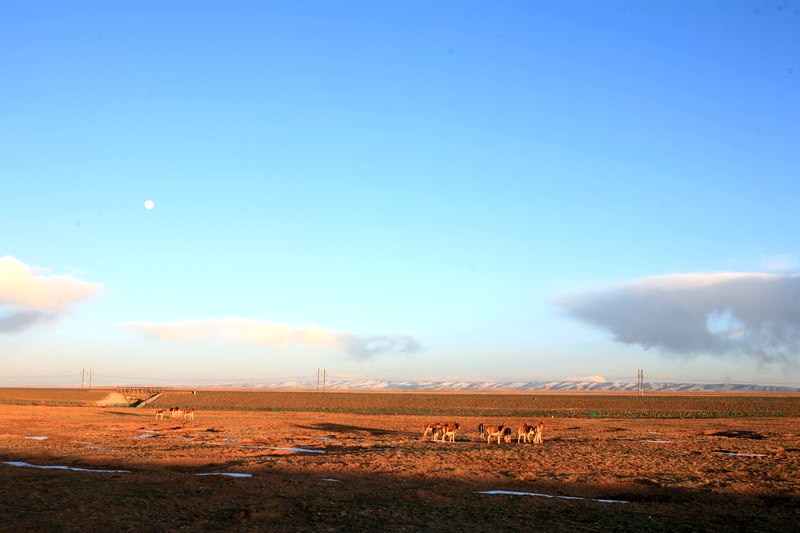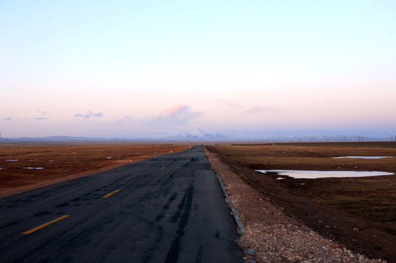 到五道梁实在忍不住找一个川菜馆吃了碗炒饭,抽棵烟和店里人聊天,得知去年居然有群人踩滑板从这里过去,ft,那要大饼那么大的轮子才能越过唐古拉山。这时已经下午5点多了。西大滩还有180公里,还有山要爬,老婆电话过来可可西里怎么样,我说就那样了,没看到有啥好看的。刚出五道梁我发现我错了。夕阳下的可可西里很美啊。