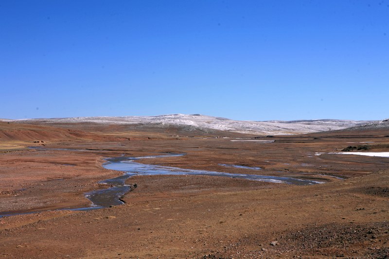 老老实实下车边抽烟边和卡车司机聊天,2根烟的功夫车队总于动了一下,我赶紧上车钻空档冲了出来,一路都是黄色的草甸和雪山,在沱沱河前一个小镇吃了羊肉泡馍,很美味啊,以前从来不想吃的。