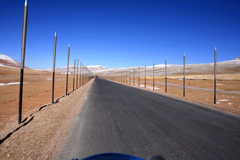 出安多没多久,就看到了传说中给永冻土散热的管子,以后路上还看到不少,有支车队一直在安装中。