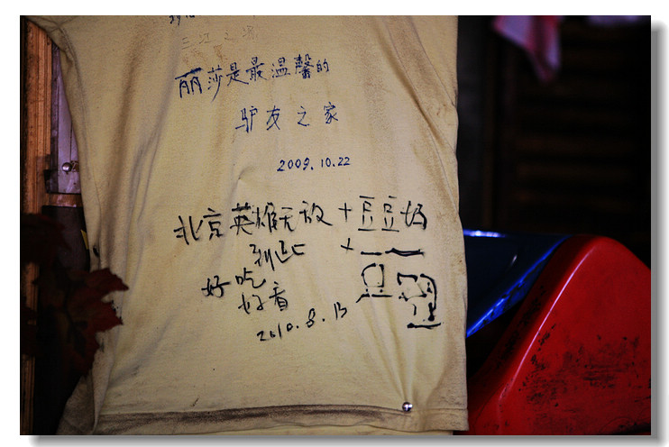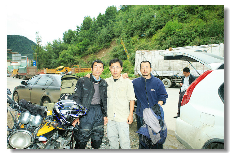 在川主寺路口的川菜馆停车吃饭,在路边等着2位摩旅朋友过来打算请他们吃饭聊天,好久他们才过来,拉进店里坐下,一聊,原来骑大黄蜂的居然是我的2010摩托进藏群里的一位兄弟,网上认识在这里偶遇,实在是有缘分,他们出来已经1个多月了,滇藏到拉萨,刚好波密塌方,请藏民抬车过了塌方区,青藏到青海湖再转到213,现在已经相当疲劳了,饭后留影