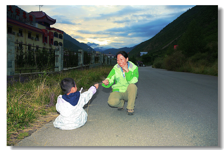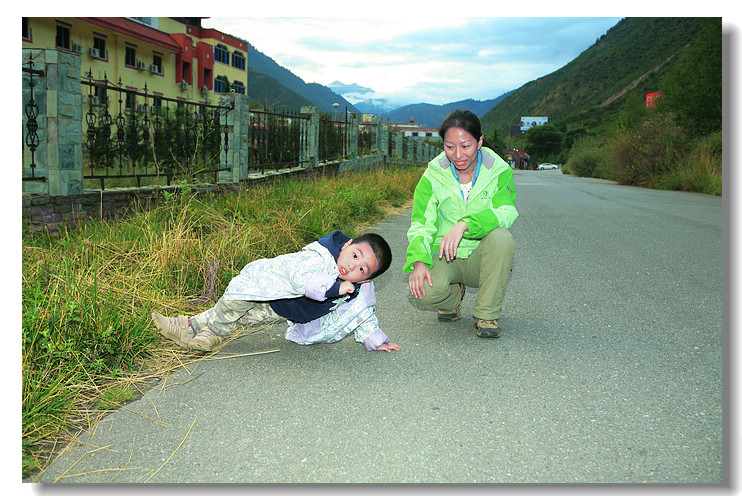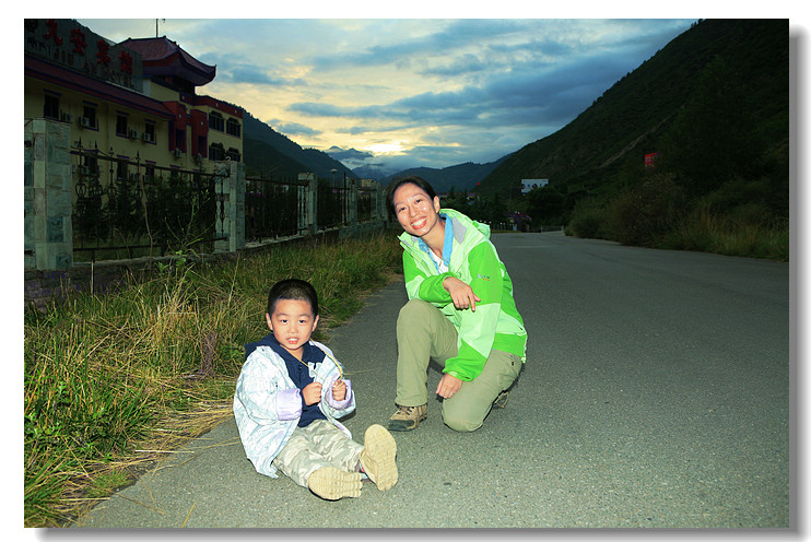 入住九寨沟金珠林卡,分给我们的房间居然是全宾馆最大的,晚饭后出门溜达,豆豆这个高难度动作,学名罗汉睡觉