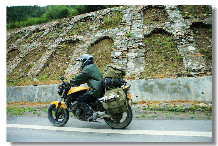 进入松潘境内,快到川主寺的时候看到一辆有硕大爱得乐后备箱的粤牌摩托车,我知道这是一个摩旅的朋友,但是没停车,再往前,有看到一辆本田的大黄蜂,两边是GDW的黄色边包,我赶紧拍了下来,摇下车窗和他打招呼
