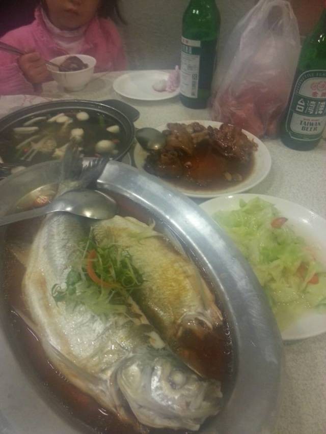 晚上和先到台湾的朋友一家在餐馆顺利会师,1500台币的套餐,鱼还是新鲜的,台湾啤酒还是要尝尝滴