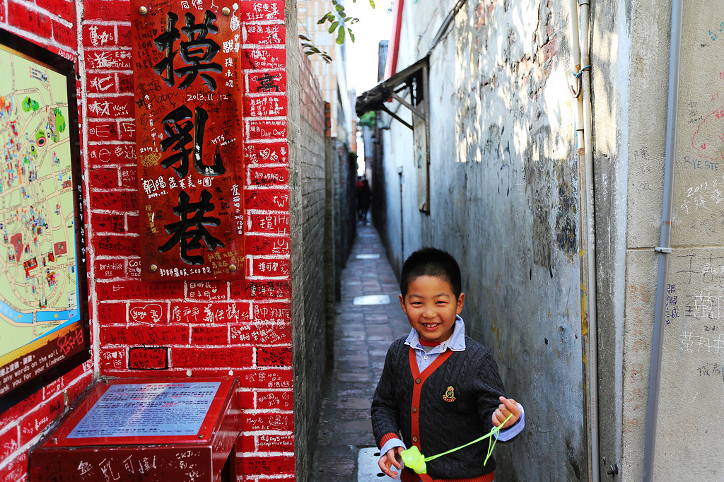 往停车处溜达时顺道参观了一下摸乳巷,豆豆很高兴来这里,不停问,为啥叫摸乳巷啊,为啥呢?