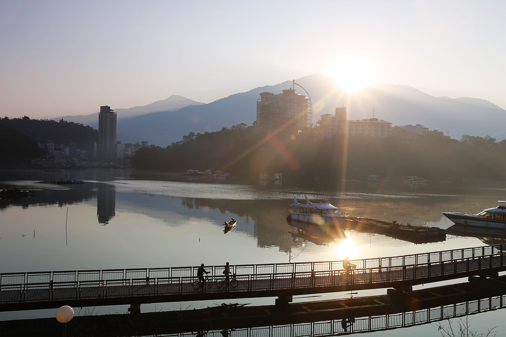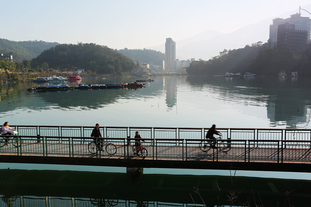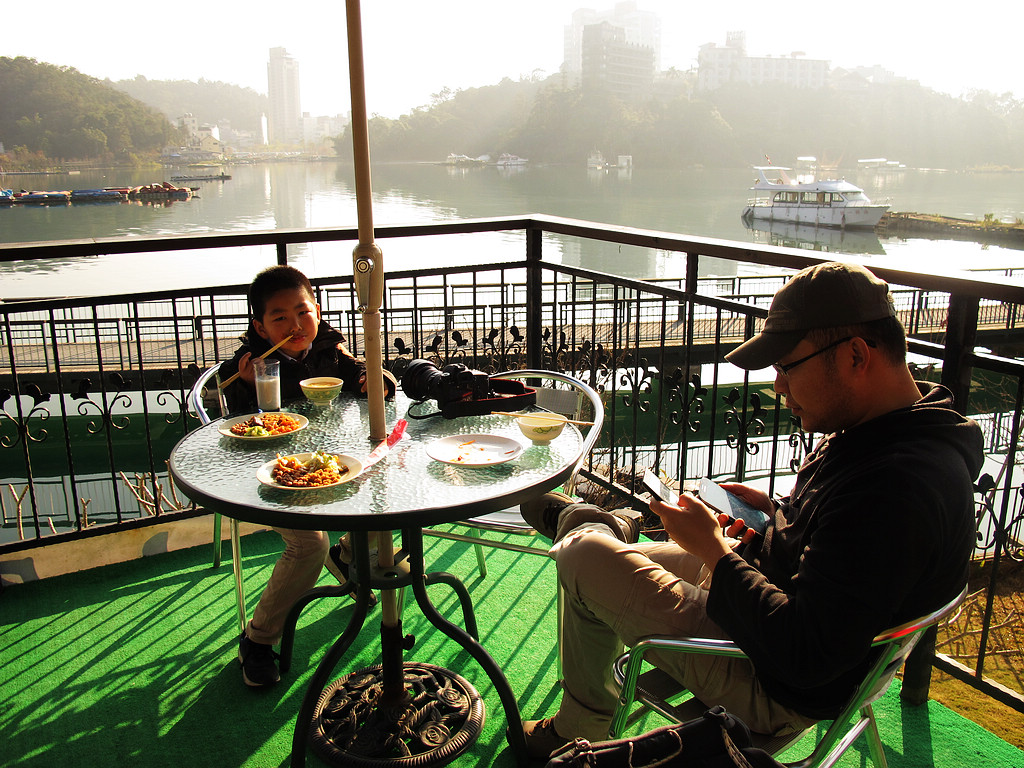 从昨晚起我基本是花钱加床打地铺一直回到台北,超过2个人一个房间就要加床,这是潜规则,价格不一样,加床好坏不一样,日月潭这里还算好,垫子软,睡得踏实。早起阳台坐了一会,来前还看等高线地图找制高点,想上去,但是这会实在没力气,坐在阳台上拍几张,聊以自慰。