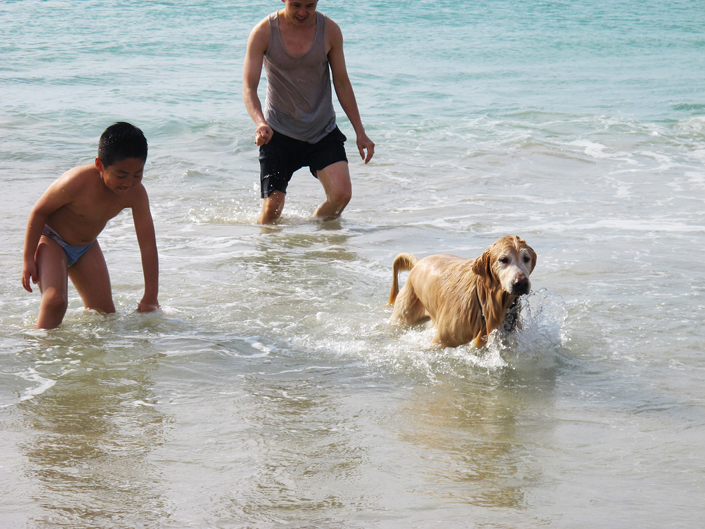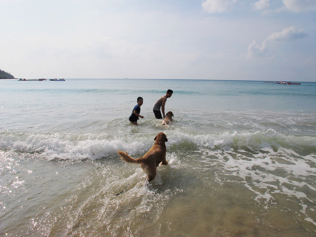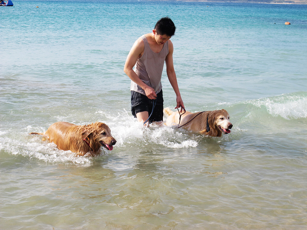 来了一大家子,没小孩,两只金毛就是他们的孩子