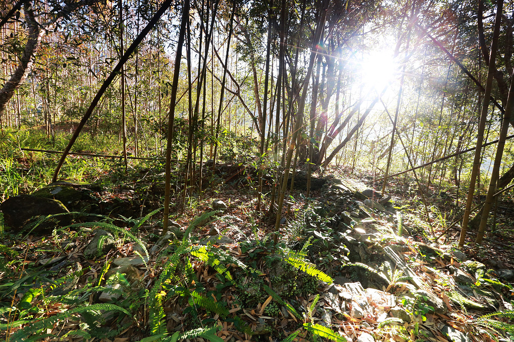 原来的居住地长满了翠竹,除了地基,什么都没留下