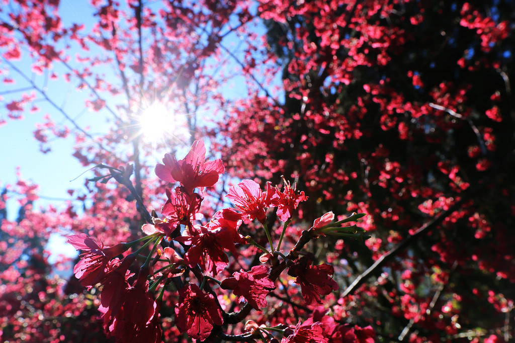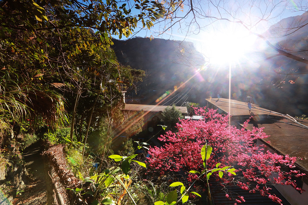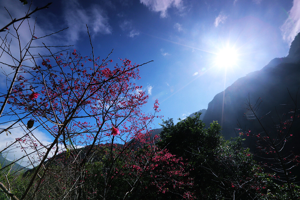 随机选择了布落湾景区拐弯,一段盘山路后到了停车场,停车后发现,好多本地人架着大炮,我很好奇,询问一位大伯,这里架炮打鸟么?正是,老伯给我看了他拍的各种鸟,我一个都不认得。这里有个山月村,原来是老荣民修路时的住宿地,现在已经被改成度假村。门口也有几株山樱花,一对老夫妇在打鸟,老人指点我说看那里有一个,我的短炮只能拍这个。