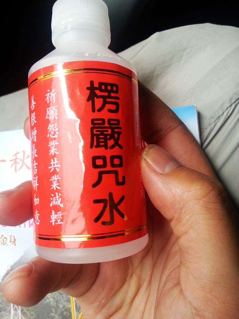 这里花了3000台币捐了功德,买了串绿檀手串,给豆豆留了名字,寺院的志愿者送了瓶圣水