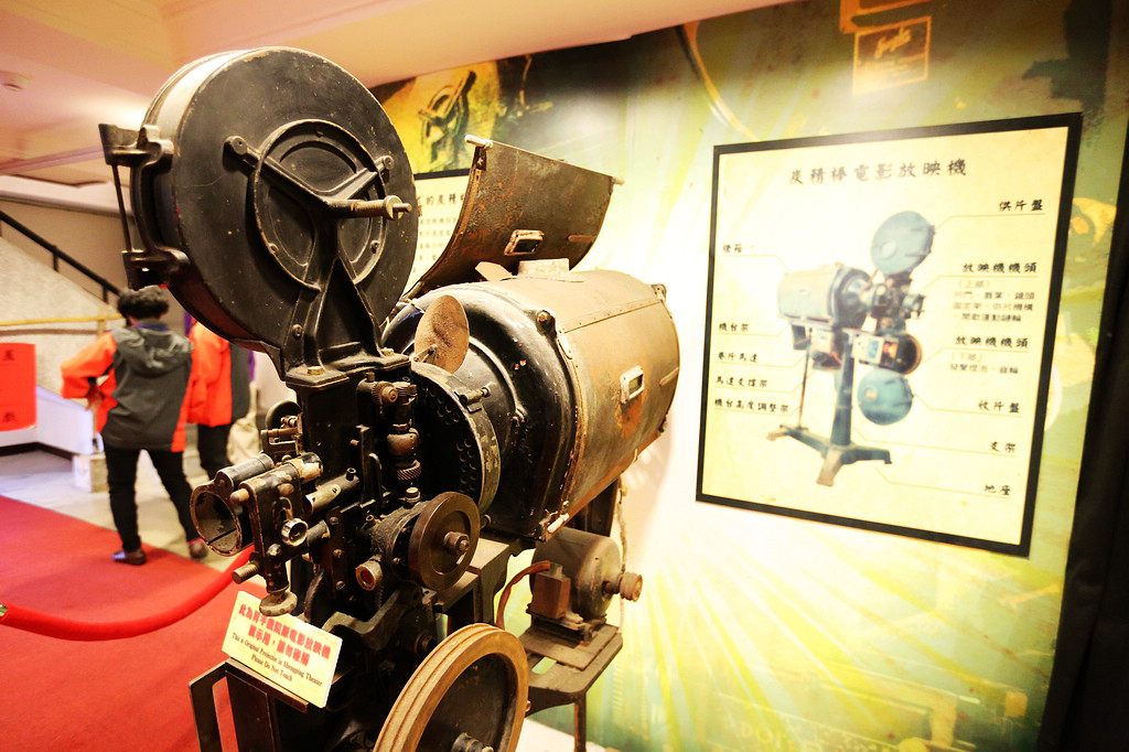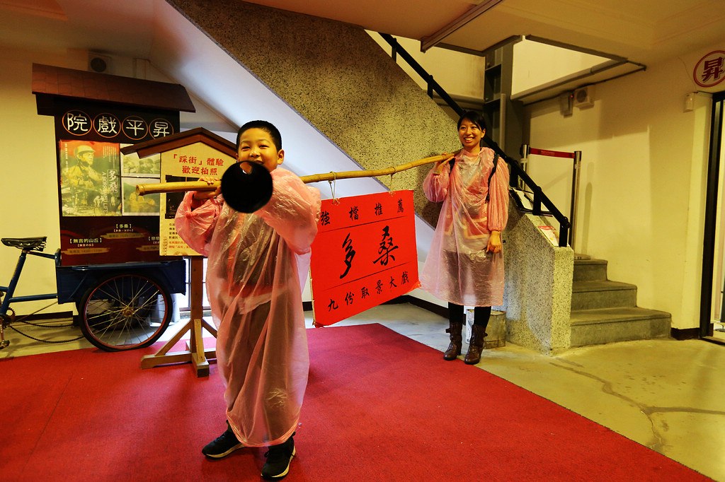 工作人员看到小朋友就热情邀请小朋友扛道具拍照留念,这是当年影院让人扛着出去打电影广告的