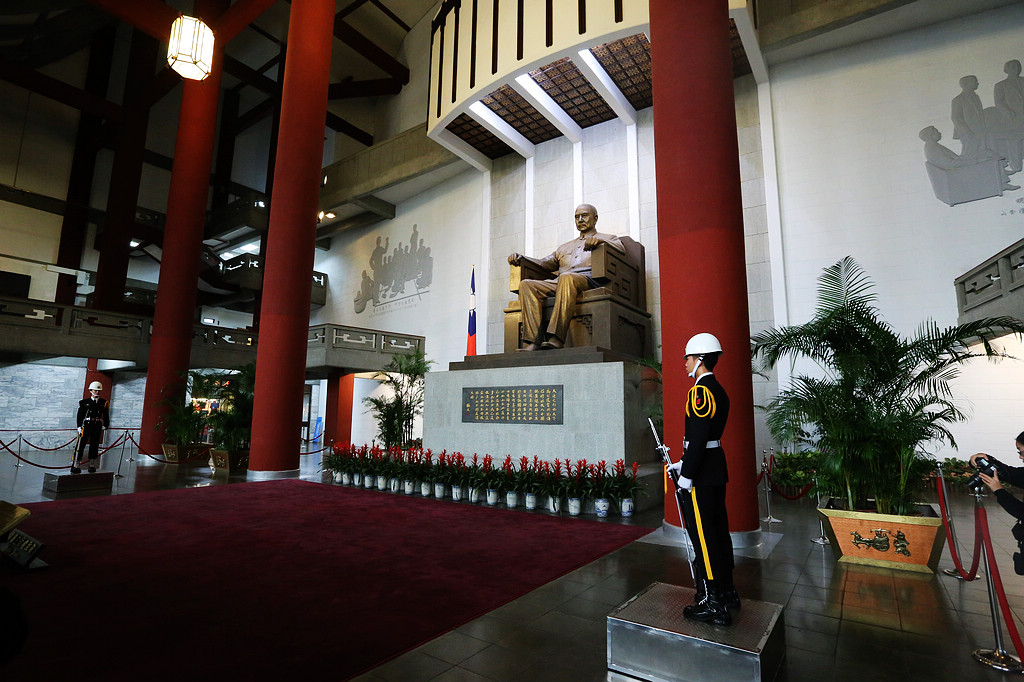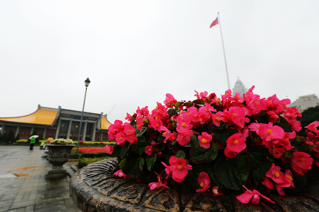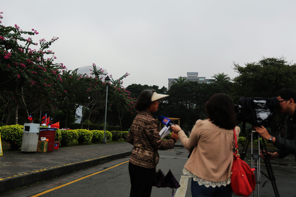 今天去国父纪念馆转转,冒雨到国父纪念馆,刚进院子,就看到电视台采访,打算让豆豆到被采访人后面去做几个鬼脸,结果边上一位卖国旗的老人起身走过来,千万别过去,那是XX功电视台的,被拍到,回去不好,谢过老人好心提醒,我们绕过去了。