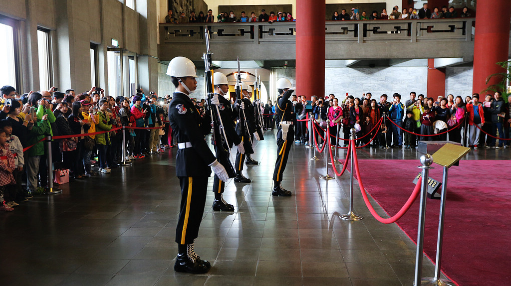 换岗仪式过程中,有大陆游客在边上嬉笑,学带队军官喊口号,礼毕~~~。还有一位女士,拉孩子走,一边拉一边大声说,看什么看,有什么好看的,太小儿科了。一种大陆人发自内心的自豪感油然而生~。