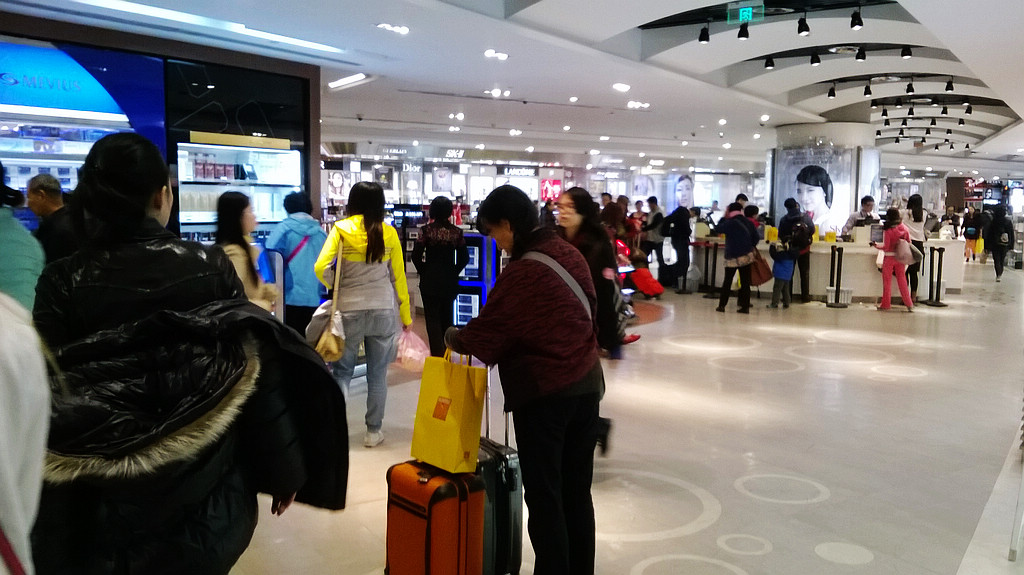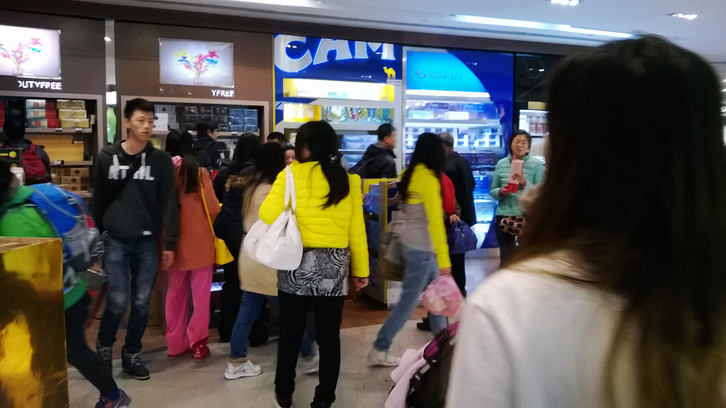 飞机正点起飞,正点降落,午夜的机场免税店还是热闹非凡,