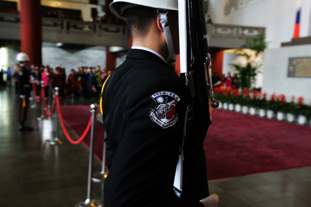 最后仪仗兵到位,回归持枪立正姿势,一个小时一动不动,其实真的很累