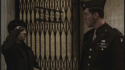 Nick给Winters请了2天假,Winters在巴黎的地铁上看到一个法国孩子和他在堤坝上第一个打死德德国人差不多年纪,这让他很不爽,眼前一直出现那个被他打死的德国小兵德样子,出地铁的时候,法国孩子向他敬礼,他没有理会,Winters这个时候的心情肯定很复杂。