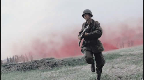 连长Winters第一个冲出,后面士兵紧紧跟上,一段无声的冲锋