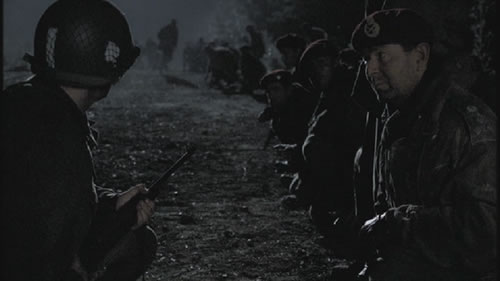 这是营救英国伞兵的一段,仔细看看就会发现,被营救德英国人手上基本没有长的武器,除了几把手枪,让我想到“遥远的桥”里一幕,英国人打的弹尽粮绝,拼了几条命抢回来的伞降供应包里居然都是红色贝雷帽,呵呵所以这里被营救德英国伞兵虽然灰头土脸,但是衣服帽子一个没缺,衣服也都端正,典型的英国人吗。[mrgreen],当然英国人说一口地道的英国英语,这点导演也不会马虎的。